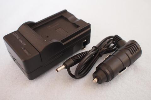 製品としては、バッテリー充電器本体と、シガーソケット用のアダプタが付属し、本体上面から給電することで、車でも使用できるようになっている。