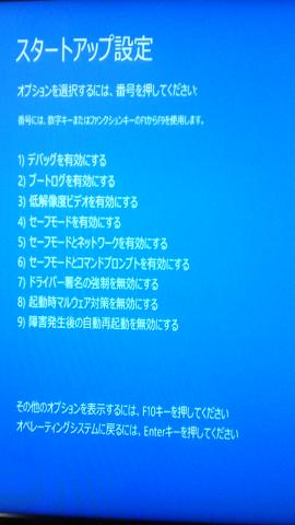 7番のドライバー署名の強制を無効にするを選択