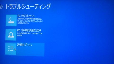 再起動するとトラブルシューティング画面になりますので、詳細オプションを選択