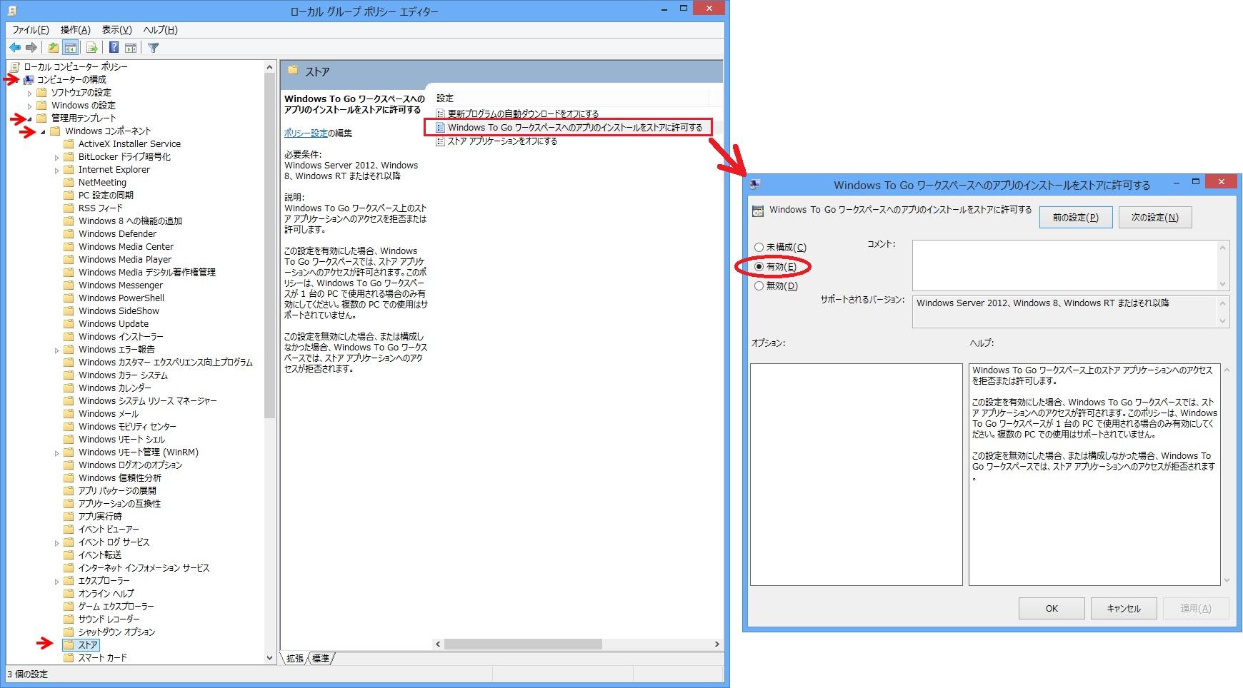 「Windows To Goワークスペースでストアを利用できない」とあり、