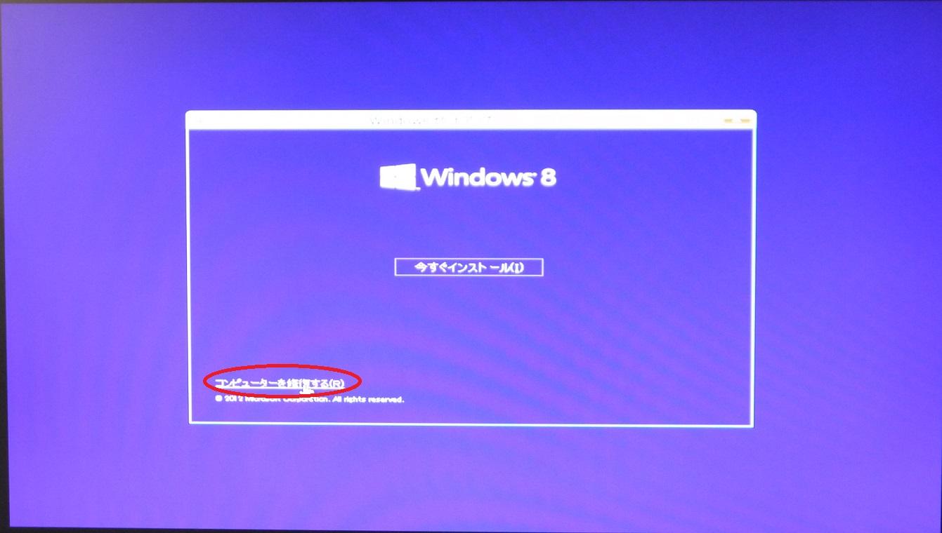 ②「今すぐインストール」ではなく、「コンピュータの修復」を選択