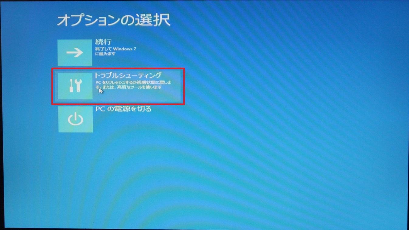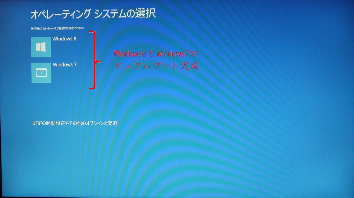 ⑭再起動後、Win8とWin7のデュアルブート画面