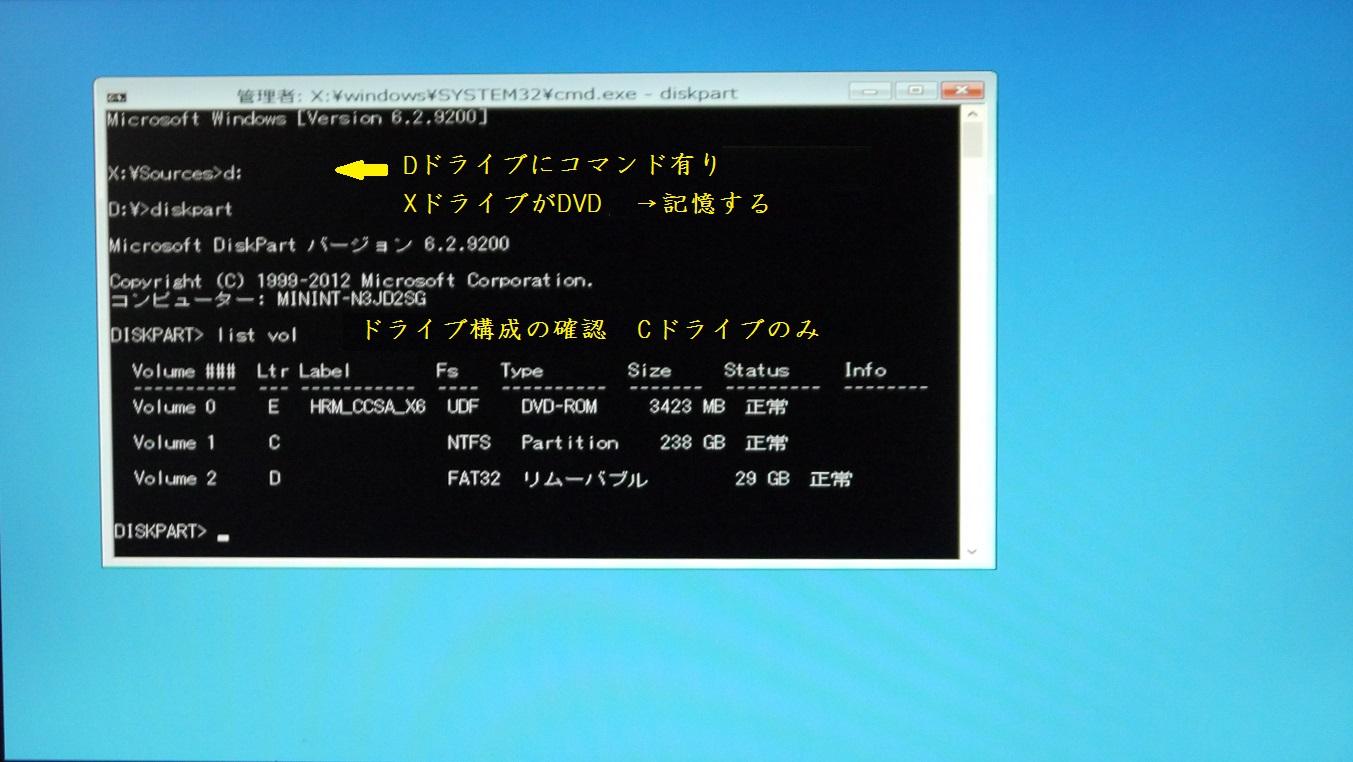 ・領域サイズは約64GBで、Win7から見ると cドライブ ルートに