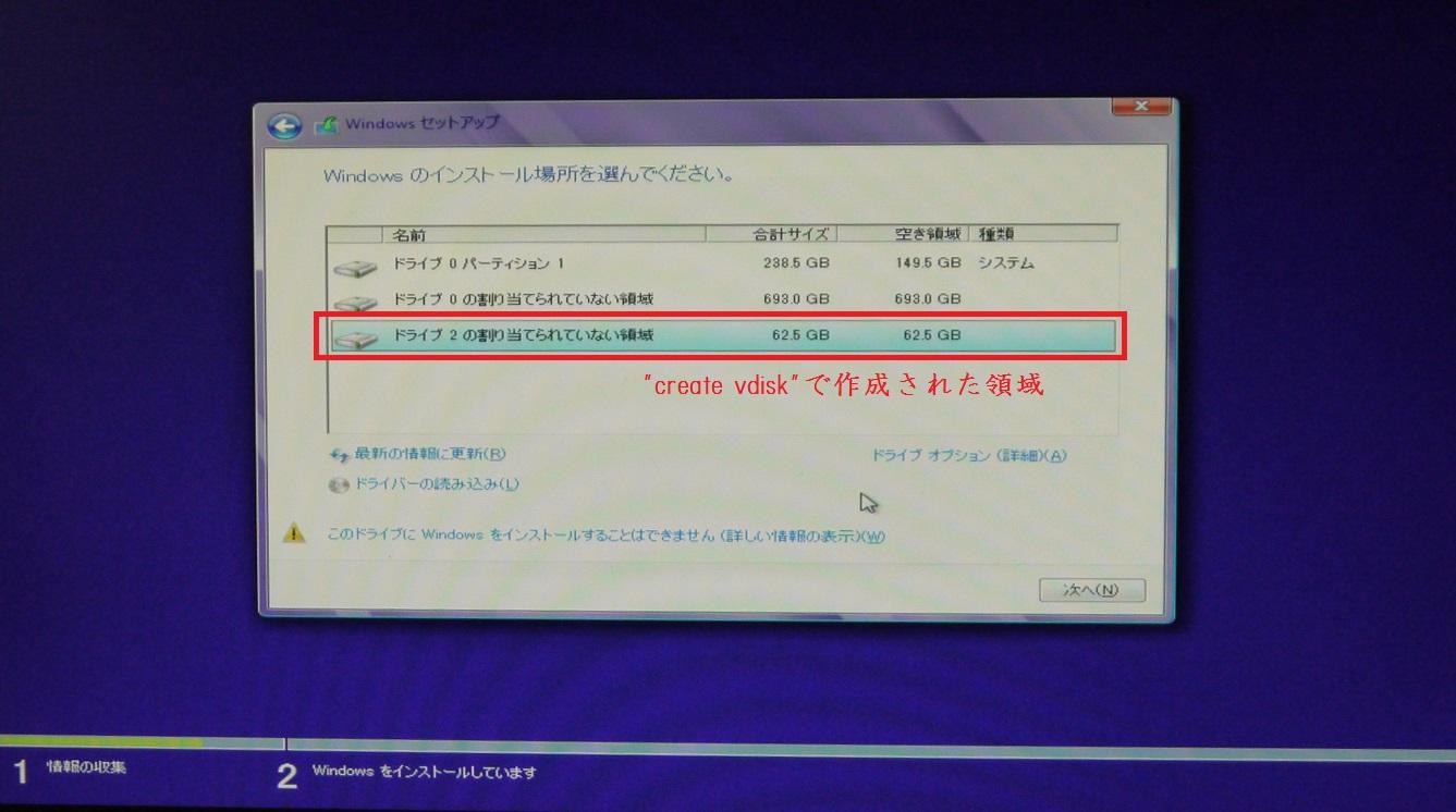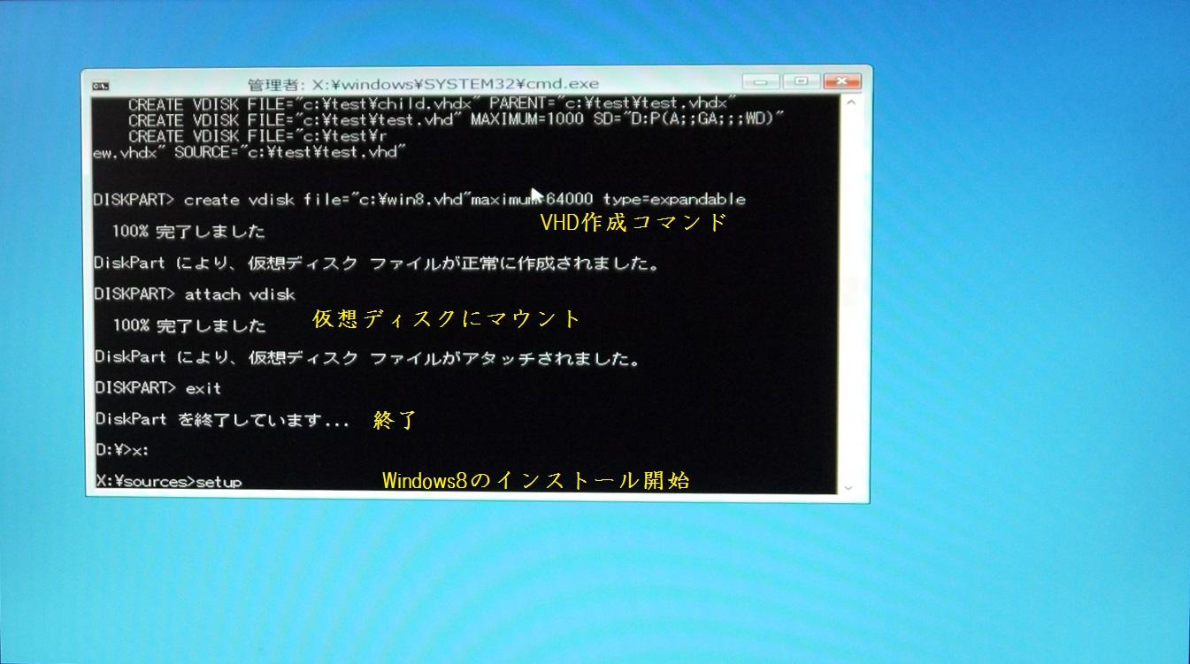 ⑧VHD作成→仮想ディスクにマウント→準備完了