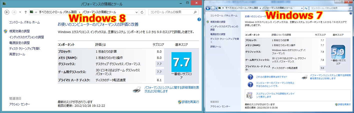 Windows8になり、計測できる最高値が「7.9」 → 「9.9」に変更されているようです。