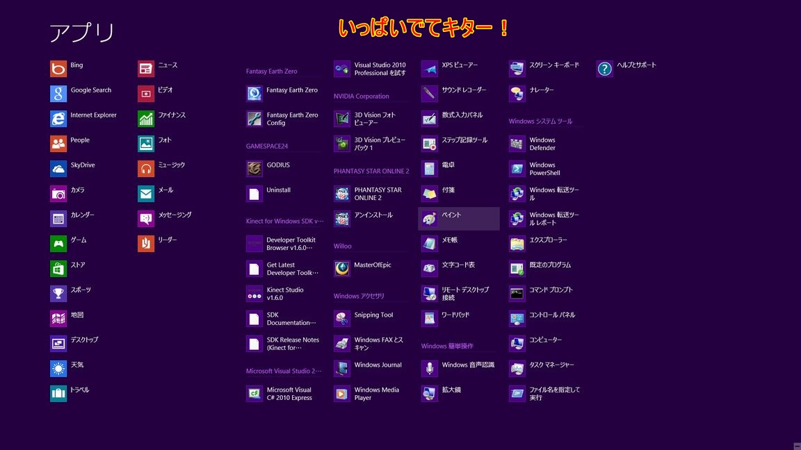 さてまずは・・・標準装備のアプリケーションがどこにあるのかさっぱり分からず!