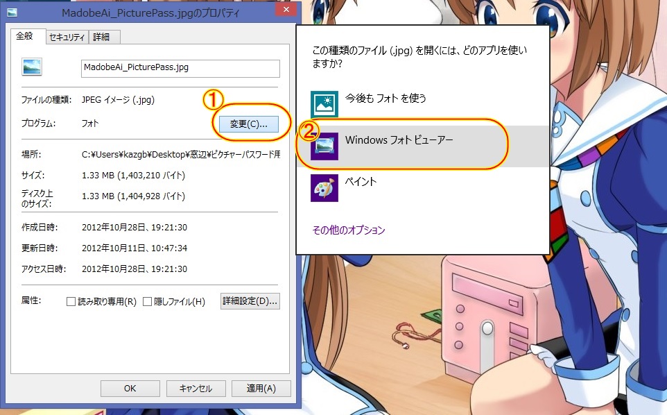 開きたい画像を右クリック→プロパティで以下の作業やるといつものになった。