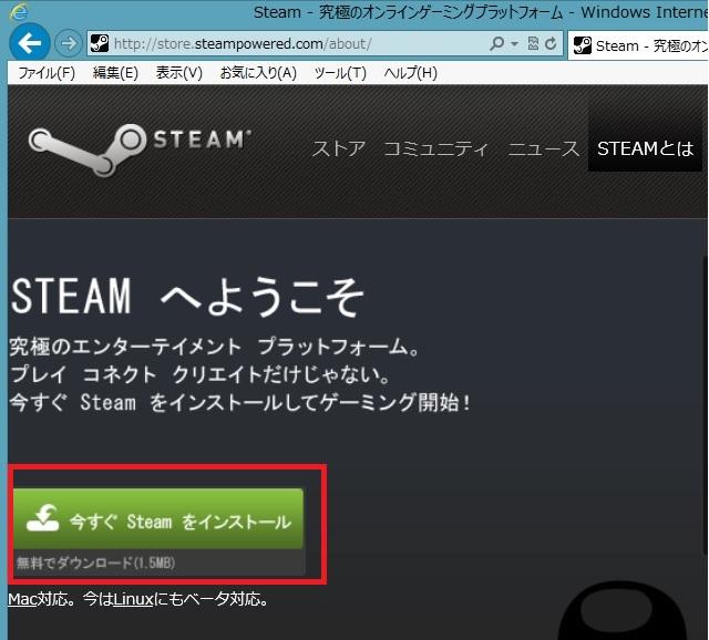 Steamのホームページ(http://store.steampowered.com/?l=japanese)から