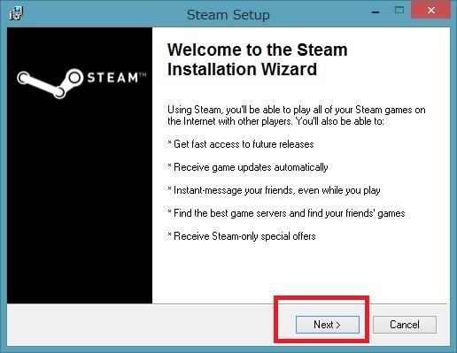 Steamプラットフォーム(管理ツール)をダウンロードします。