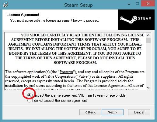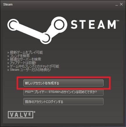 Steamからソフトを購入したり、起動するにはユーザ登録作業が必要です。