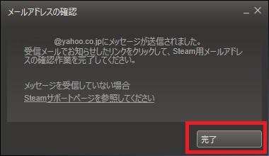 この画面のまま、メールのリンクをクリックし、「完了」をクリック