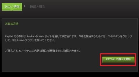 支払にPaypalを選択したので「PAYPALの購入を開始」をクリック