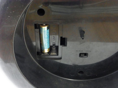 でかいからといって電源はたいしたことがない。単三電池2本(時計用1本、ベル用1本)だ。まあボイスクロックでもないのにベル用にわざわざ1本備えている時点で本気度を感じる訳だが。