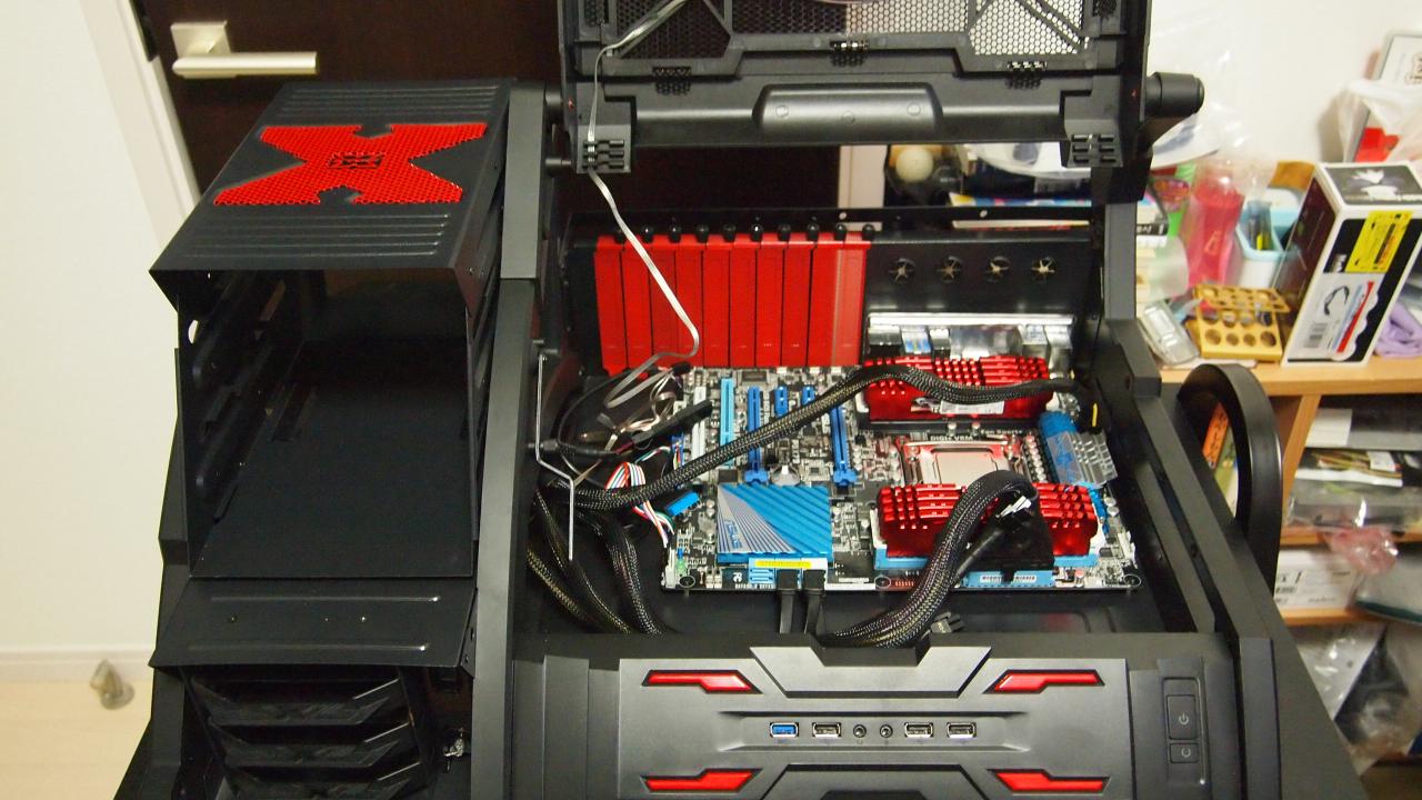 右側のケースはCorsair Obsidian 800D という一般人に大人気のケースさ