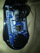 左から、ソールを剥がしてネジ穴をむき出しにした写真、外した写真、カバー側の基板を外した写真、KONE+のセンサーチップ。