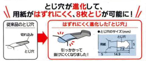 どちらにしろ、複数綴じてしまうと穴が空く面積が広くなりますので、本品は軽く留めておくか今後開く可能性の低いモノを留める時に使うつもりでいます。