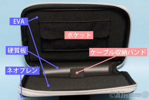 一般的な衝撃吸収系ソフトケースというと、ネオプレン系や低反発系が多いですが、このソフトケースは3種類の素材を使用して、防御力を高めているようです。