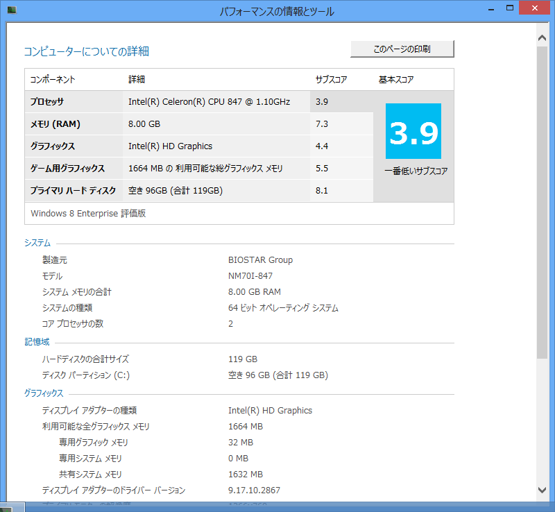 予想通り CPUスコアは低いです。公開されている情報では Pentium Dual Core E2160相当ぐらいのパワーのようです。