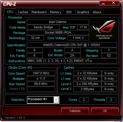 IvyのULV仕様がまだ出ていないため、チップセット出荷時にはCeleron 847 (DualCore 1.1GHz, TDP 17W) か Celeron 807 (SingleCore 1.50GHz, TDP 17W) のいずれかと組み合わされて、2012Q4より出荷開始されたばかりです。