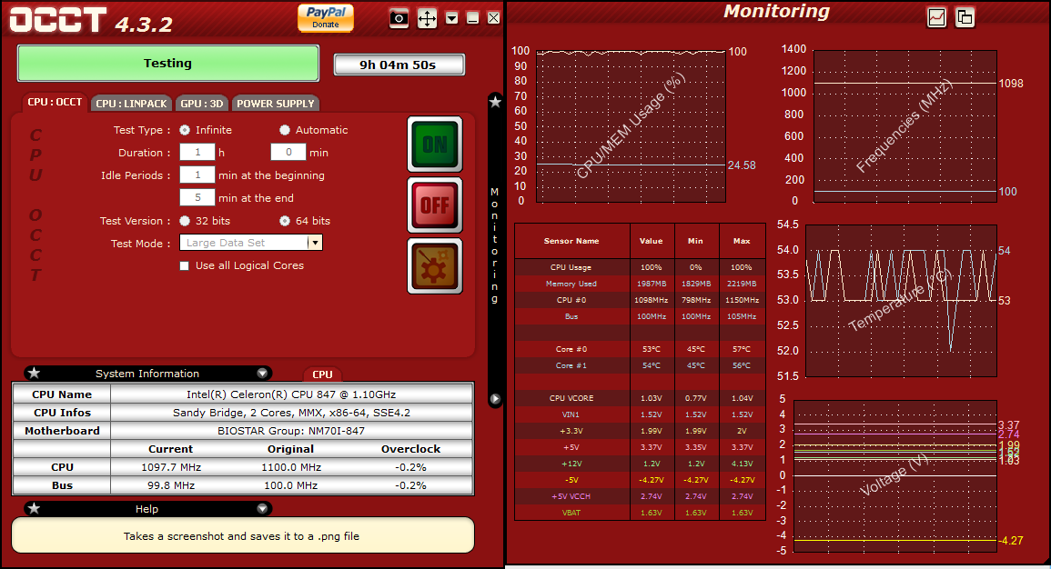 G630T+H61が アイドル25W,OCCT負荷時54Wでしたのでアイドル時4W削減できています。