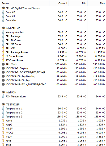 CPU Package Power(CPU全体の消費電力)は、ほぼ12Wで、