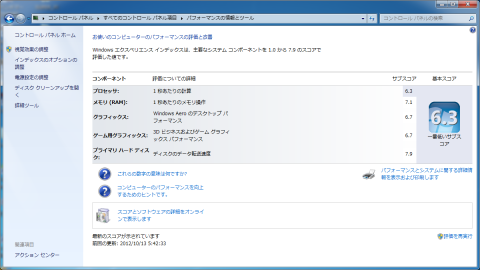 プロセッサが6.3へと微増。なぜかメモリが落ちてる。何故に^^
