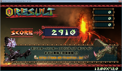 とりあえず、2133のOCメモリを挿し、OC前後のベンチをモンハンベンチで測定してみました。