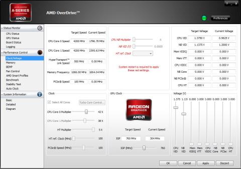 M/Bからでは調整できないようなので、AMD OverDriveを使用。