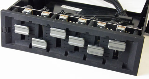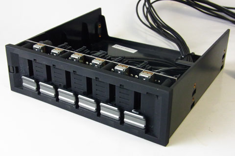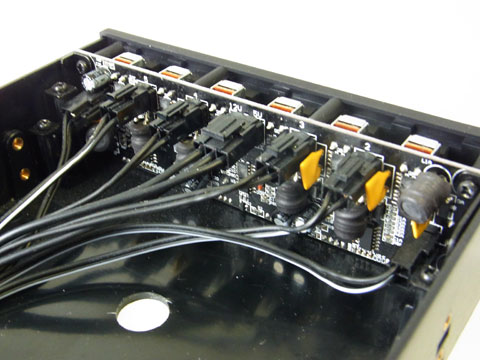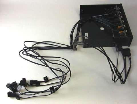 ケーブル類は黒で統一され、一般的なファンコンのものより硬めのケーブルになっていて頑丈そうだ。出力可変範囲は40~100%。見た目どおり6つのファンコントロールが可能で、出力側は全て3pinコネクタとなる。