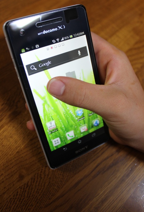 それこそXiスマートフォンのフラッグシップ機 GALAXY S3の4.8インチと比較すると小さいですが、発売前に色々なサイズのモック機を触ってみたところ4.3インチくらいがちょうど良く、実際Xperia AXを選んだ一番の理由は4.3インチなところかもしれません。笑
