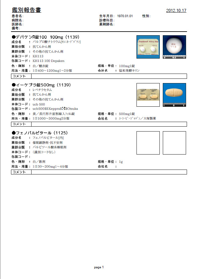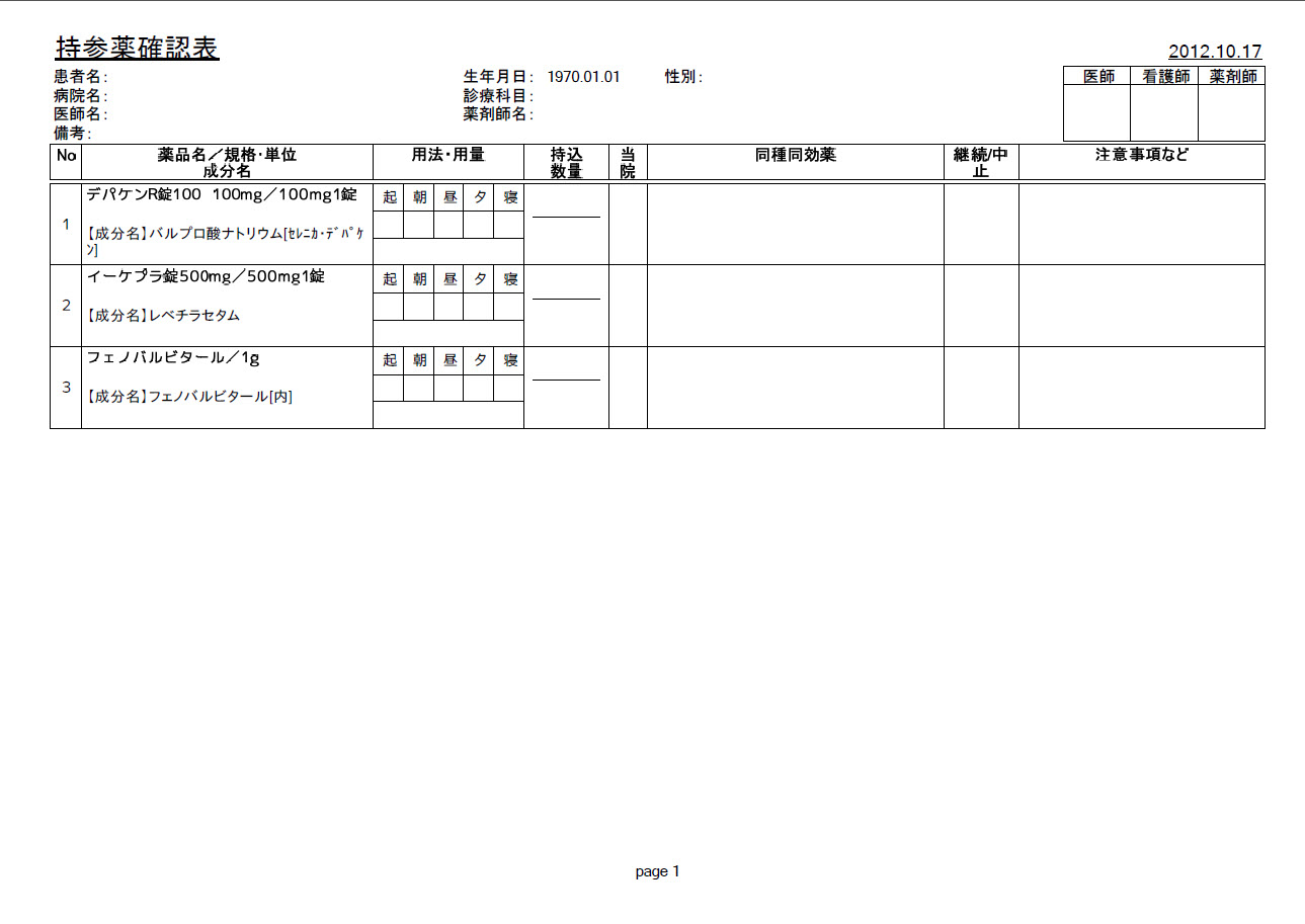 持参薬確認表も作れ、服薬時期等も管理できます。