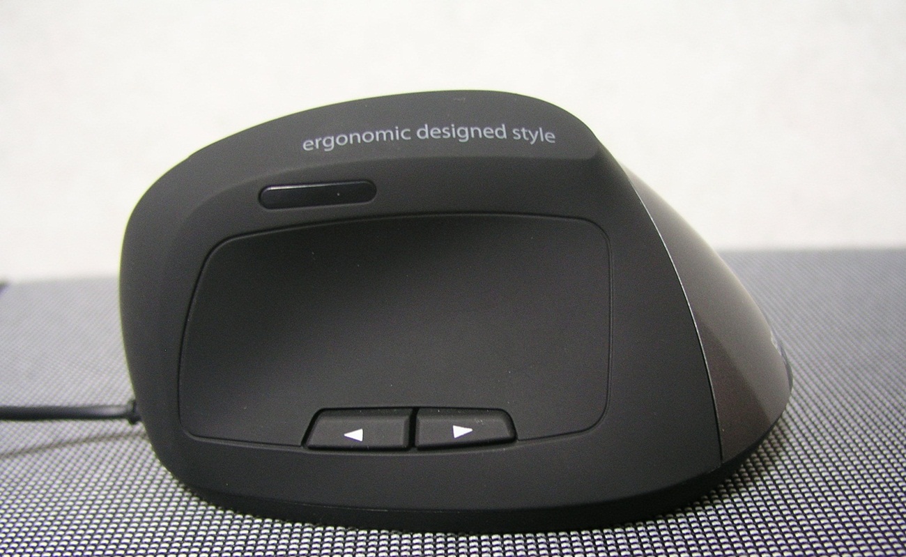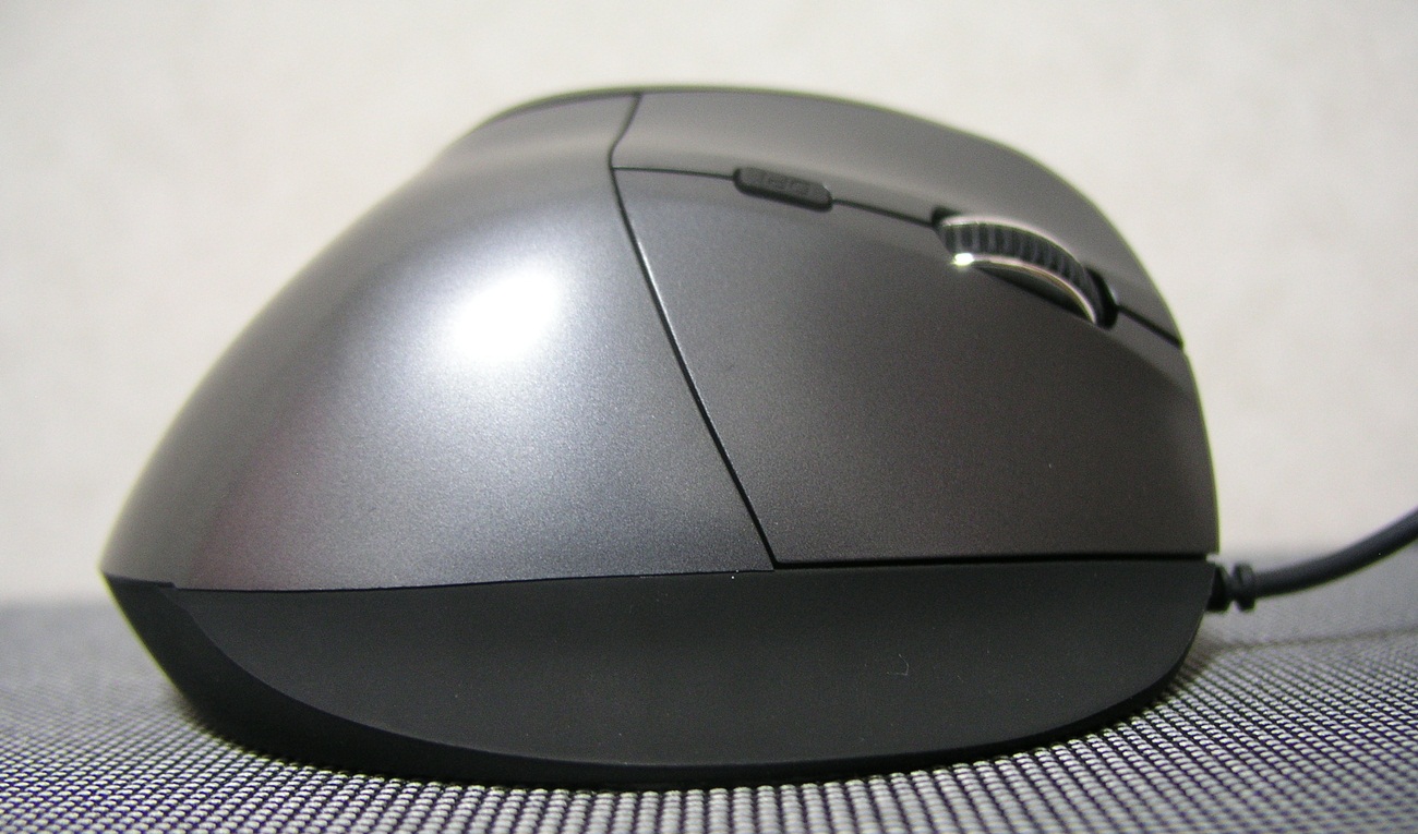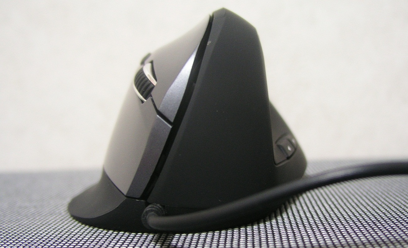いわゆるエルゴノミクス型の縦型マウス。有線タイプ。