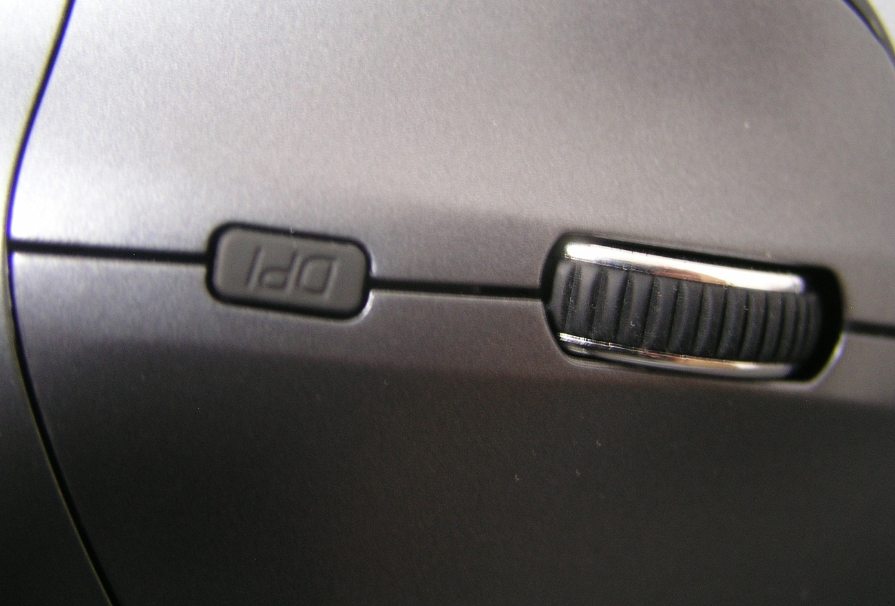 ホイールの上に付いている「DPI」というボタンは、DPI(マウスの分解能」切替え用スイッチ。