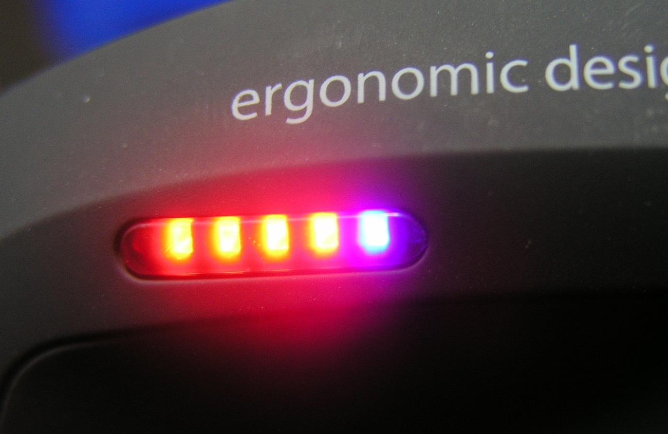 赤の四つがDPI数、青はレーザー発振中かどうかを示す。