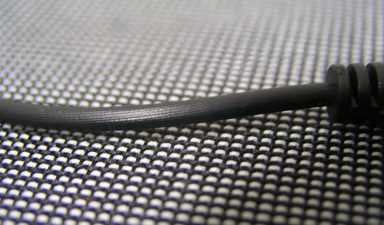 このケーブルについた細い溝は、ケーブルの捩れを防止する効果があるそうで、実際に捻れたり捩れたりすることがなく、マウス操作の邪魔にならない。