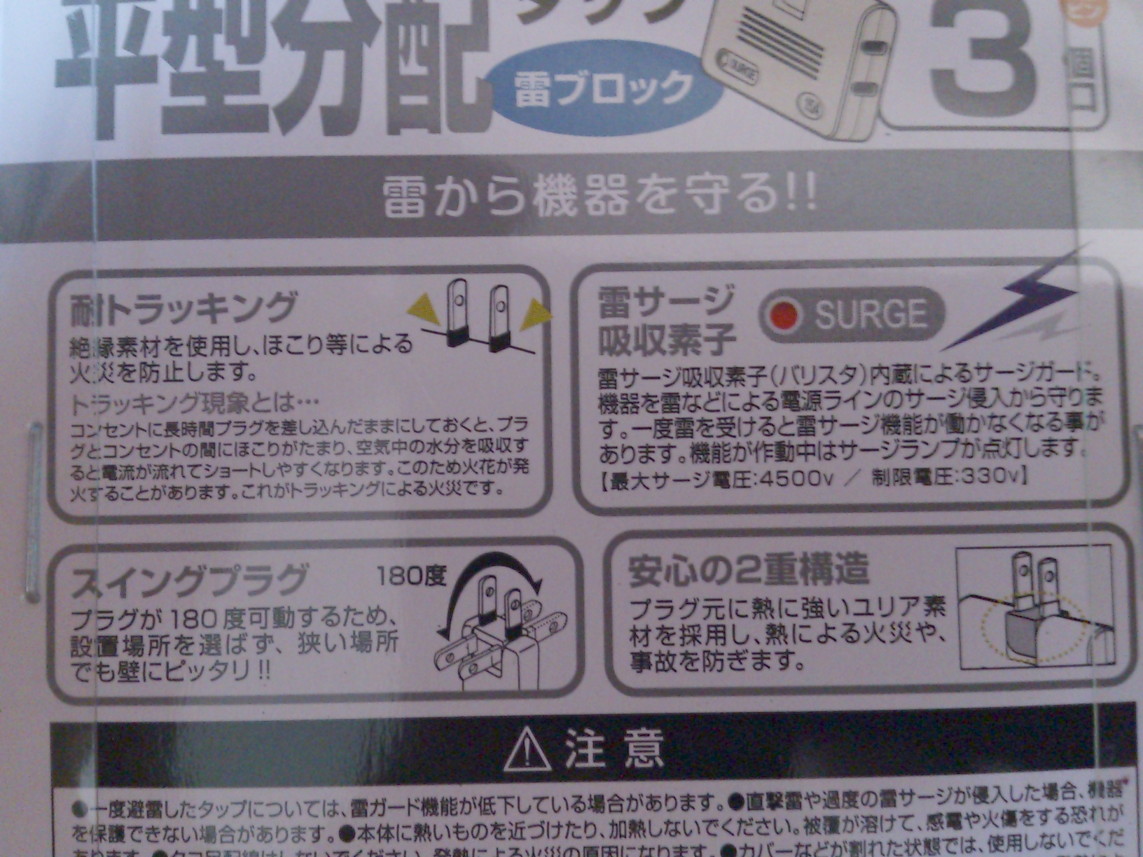 雷サージ機能が付いた電源タップが欲しかったので、評価はそっちのけで購入してみました。