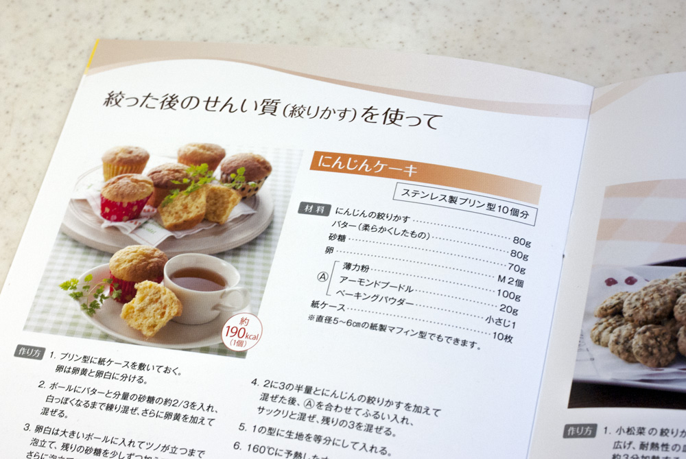 絞りカスを使ったメニューは付属の冊子にいろいろ紹介されていて、読むと捨てるのが勿体なくなってしまいます。