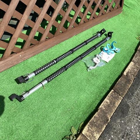 ここまで揃えたら引くに引けずホームセンターに行きウロウロした結果、1本\500円のパイプを2本調達。120cmあるので室内後方まで伸ばせそうです。