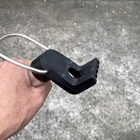 急ブレーキかけても前後に稼働できるのと滑り止めのゴム材でロッドを傷めない。