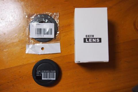中には、マイクロフォーサーズ用Cマウントアダプターとリアキャップ、CCVT LENSと書かれた箱が入ってた。