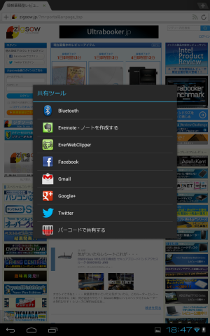 Android端末でブラウジング中に気になる情報があれば、クリップしてEvernoteへ登録しておく。