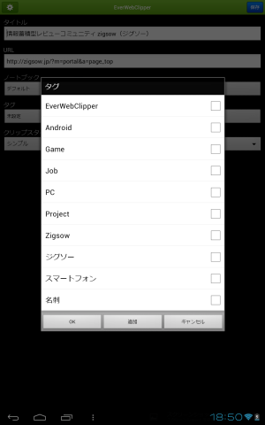 Androidタブレット端末からEvernoteへ接続してみた。