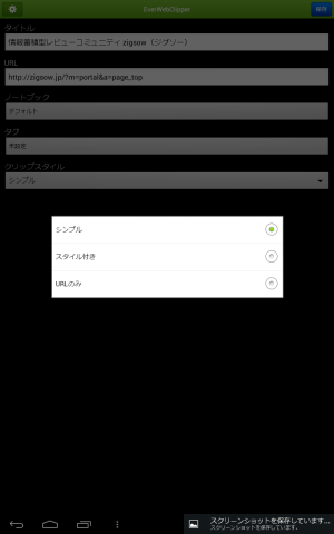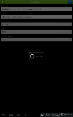 タグ、クリップスタイルを選択後に保存ポタンを押すとクリッピングが開始される。
