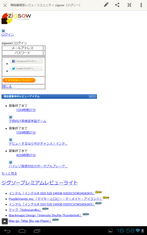 ブラウザにはDolphin Browserを使用した。