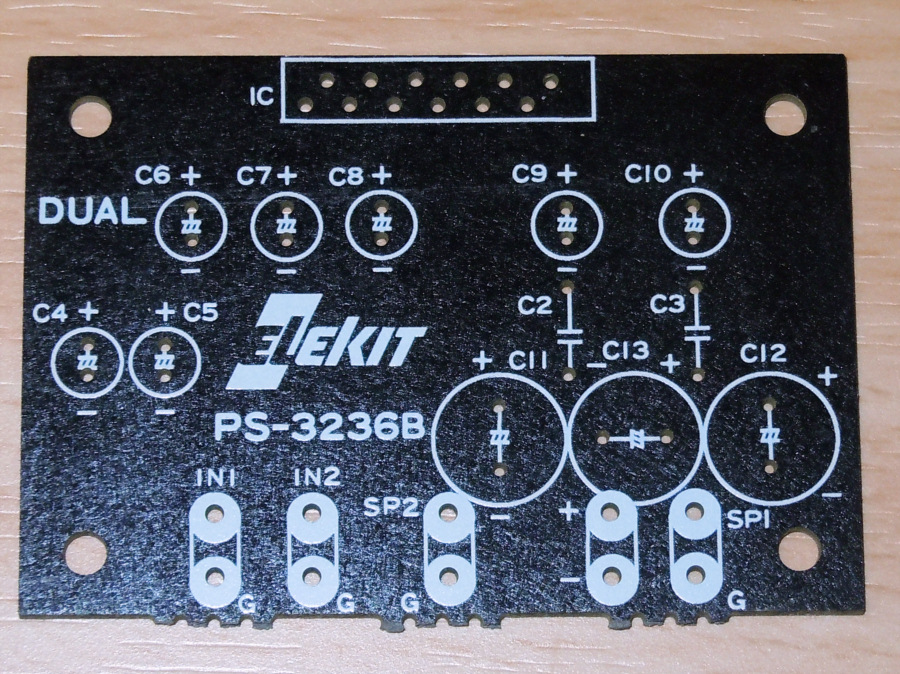 もう生産完了してますが、BTL だと モノラル 20W、ステレオだと 5.7W+5.7W が得られるICアンプキットです。