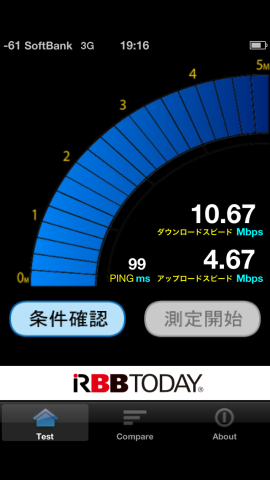 自宅での電波の強さとベンチマークテストの結果です。