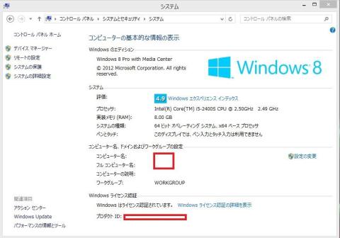 Windows 7 Professional 64bitから、Windows 8 Pro 64bitにアップグレードしました。