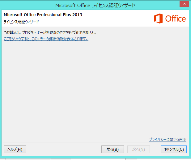 →再セットアップの修復でプロダクトキーの入力をネット経由でしたところ