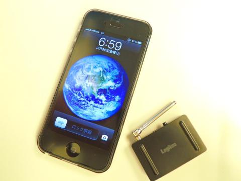 チューナー本体はとてもコンパクトで、iPhone5と比較してこの程度。