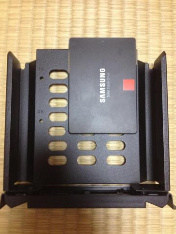 私のケースにはSSDを直接5インチベイに取り付けるリムーバブルトレイが付いているので、トイレに直接SSDをネジ留めし、差し込むだけで認識しました。